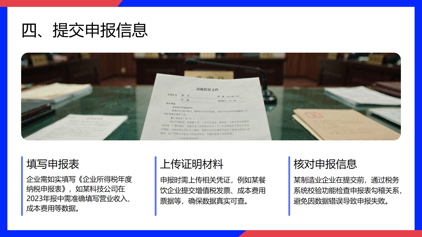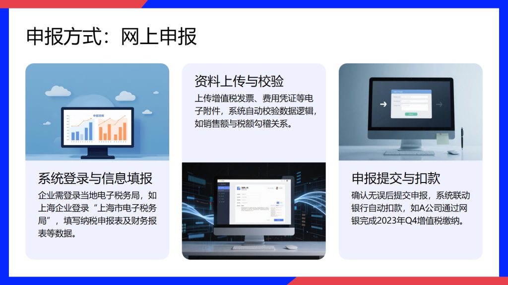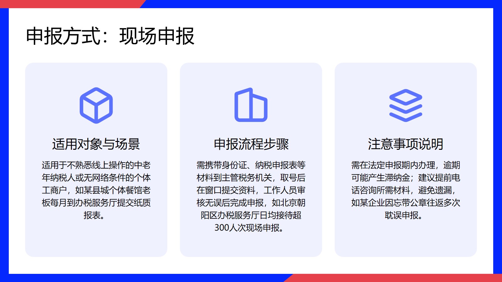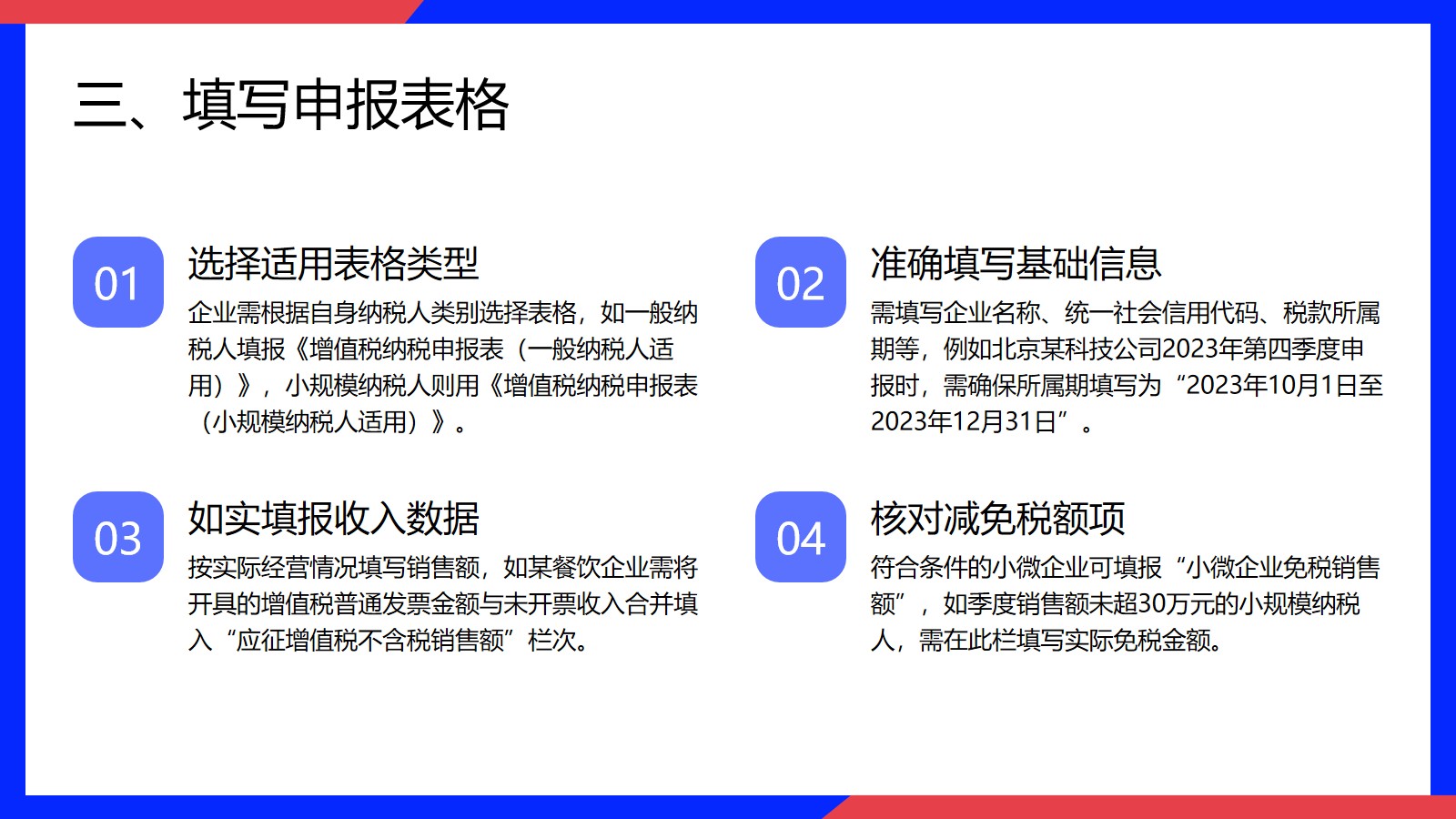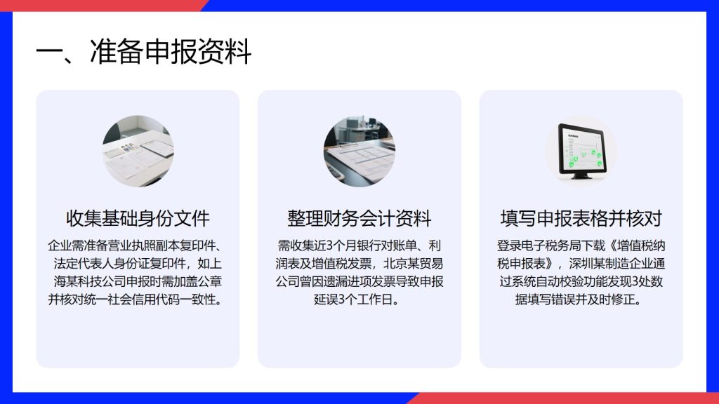 税务申报 税务申报是指纳税人依法向税务机关提交纳税事项书面报告的行为,依据《税收征收管理法》第二十五条规定,企业需按期如实申报。申报主体包括企业、个体工商户等,需明确税种、税目、计税依据等要素,如小规模纳税人需按月或季度申报增值税。